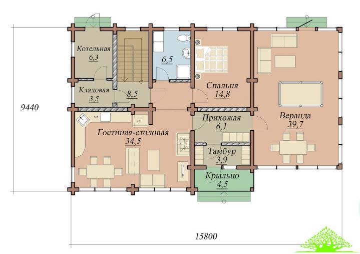 Материал: клееный брус Название : Коттедж №2Общая площадь: 208 м2Полезная площадь: 203,5 м2Площадь 1-го этажа: 123,8 м2Площадь 2-го этажа: 79,7 м2Площадь террас балконов: 4,5 м2